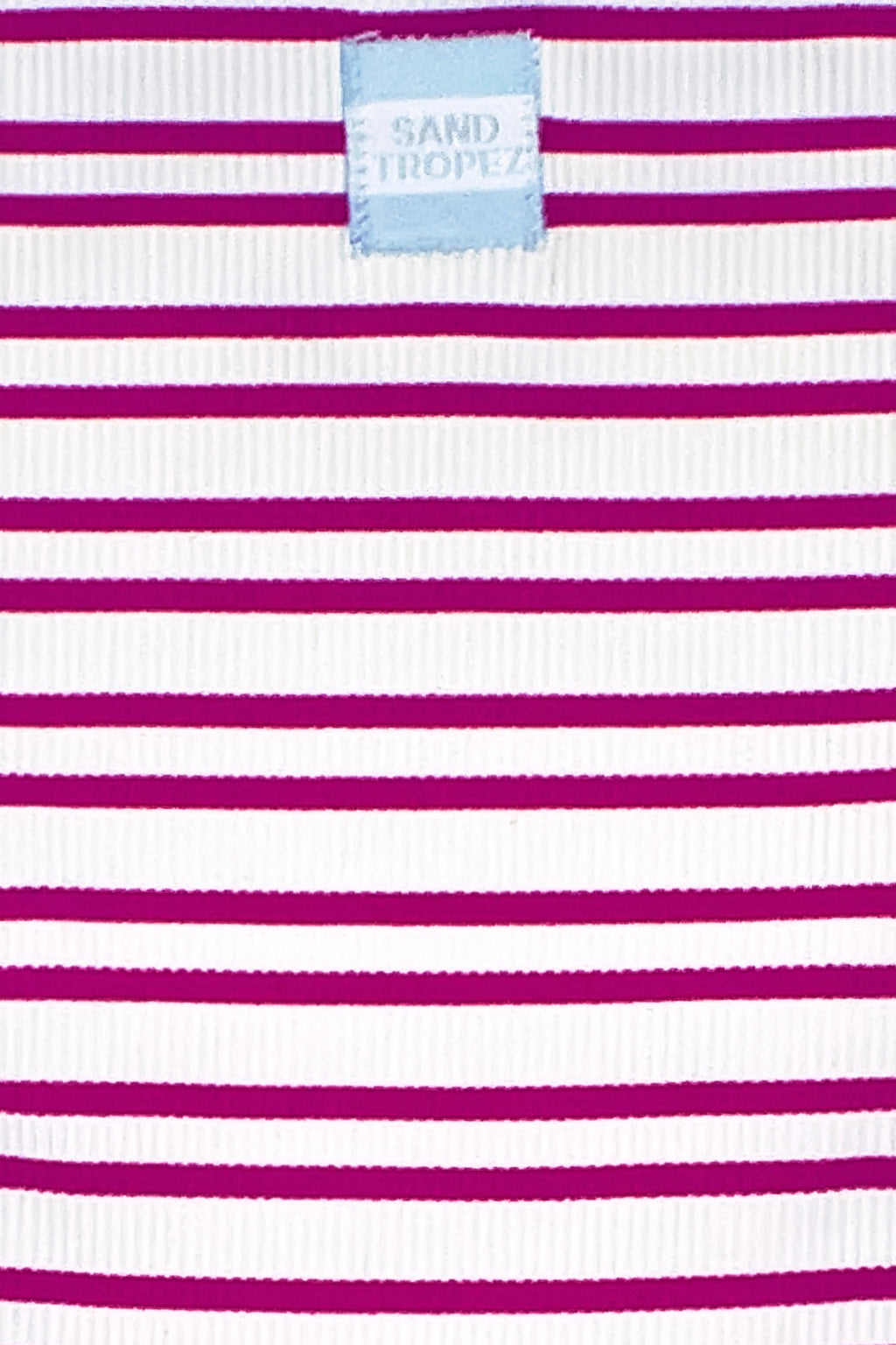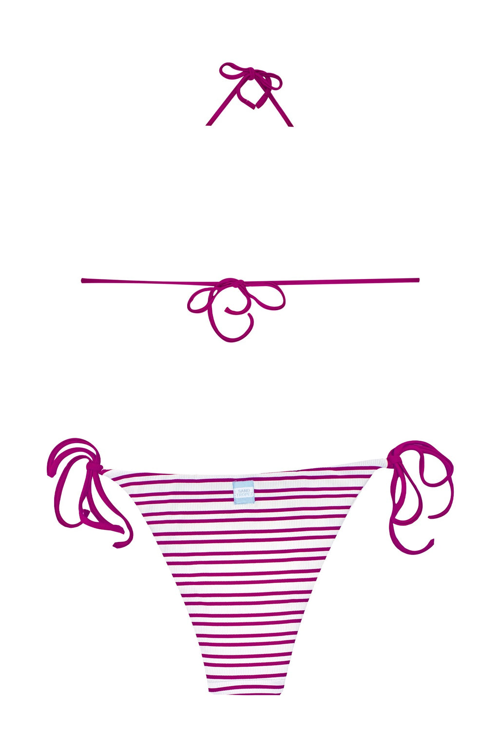 • Bikini en tejido canalé con estampado de rayas en tonos fucsia y blanco